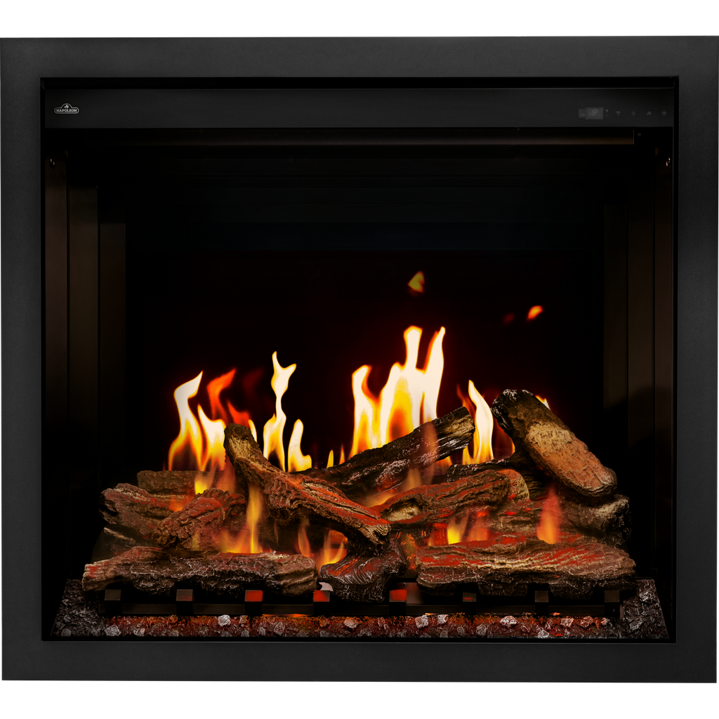 Transform your space with the ultimate immersive fireplace experience! The stunning 42” Elevation™ X Electric redefines realism with high-definition gas and wood flame videos on an LCD rear panel, layered with multi-layer technology for an unbelievably lifelike effect. Authentic glowing Split Oak Logs and crackling sounds complete the cozy fireside atmosphere. Effortless to install with no chimney or gas line required, it fits the same rough framing as Elevation™ gas models, letting you frame now and choose fuel later. Enjoy whisper-quiet warmth with energy-saving, and heat-boosting, settings. Effortlessly control this electric fireplace the included remote, with your voice through Google Home or Alexa, or use the Napoleon Home mobile app for even more customzation options! Whether you want soft ambiance or a dramatic glow, this fireplace makes every moment unforgettably cozy.